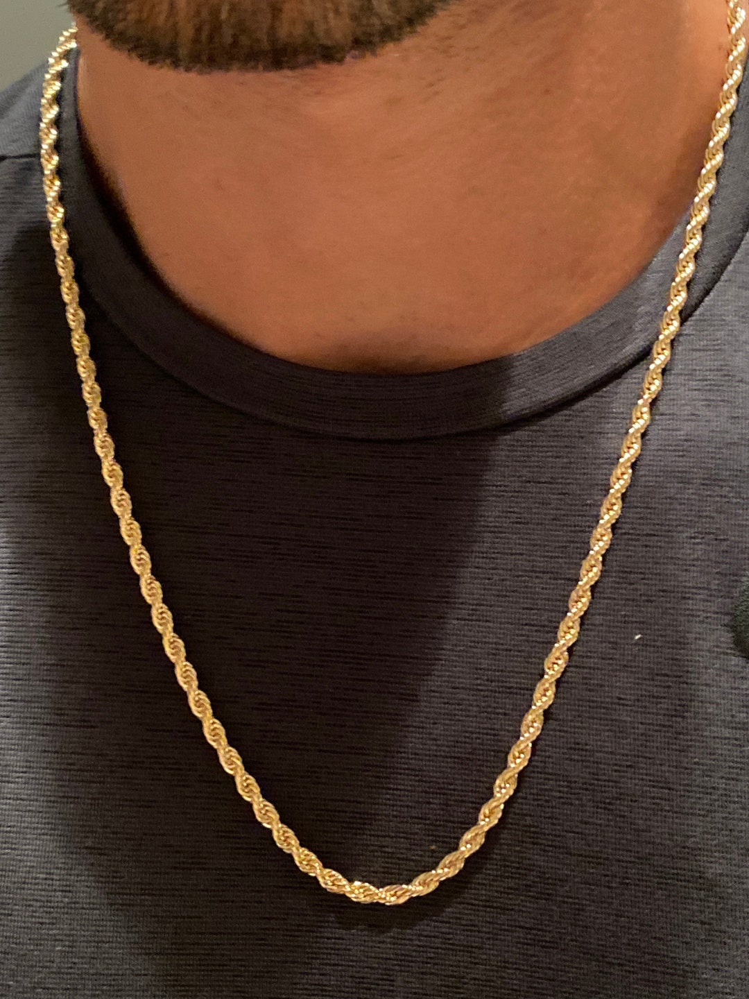 Mens Gold Rope Chain . 1-48 of over 3,000 results for "mens gold rope chain" +15 other colors/patterns Men's Gold Rope chain necklace, 4mm width and crafted in 18, 20 or 22 inches