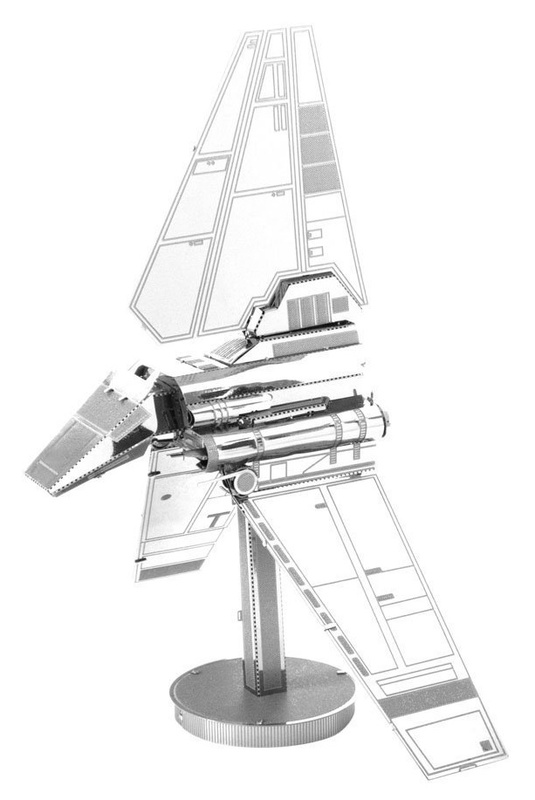Star Wars Shuttle Imperial. Used by the Galactic Empire, the vessel has a stationary top wing with two folding bottom wings The Mandalorian; Jedi Temple Challenge; The Book of Boba Fett; Obi-Wan Kenobi; Andor; Ahsoka; The Acolyte; Skeleton Crew; Animated series.